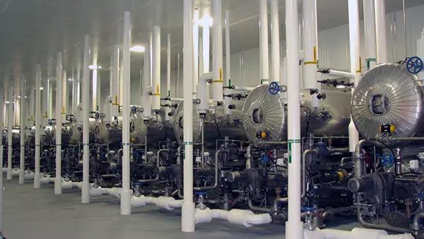 - Innovative, cost-effective cooling: Steam is inherent to the cooking process. In previous applications, the manufacturer had condensation problems due to the amount of steam produced and emitted by the cookers. Matrix specified an ammonia over glycol process cooling system which was connected to the exterior hygienic air handling units. The ammonia over glycol system is considered the best compromise between cost, safety, and environmental impact.
