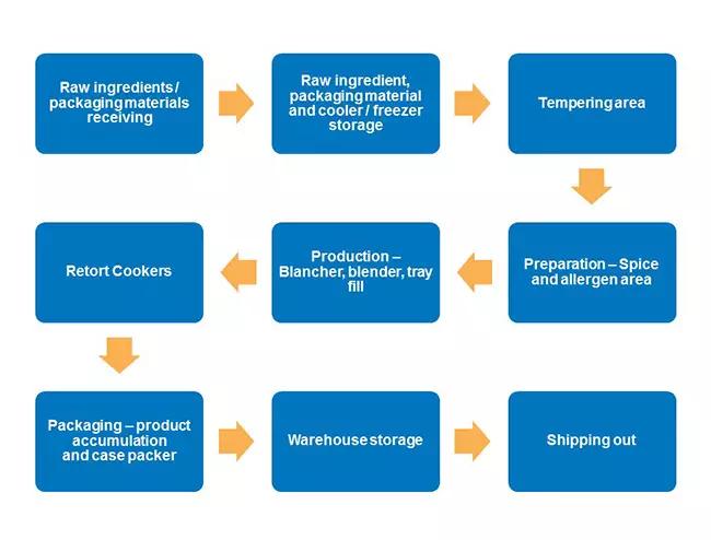 Design for the retort cooking systems in the facility included equipment layout, utility system sizing and design, cooling water system design, and integration into the plant control systems.