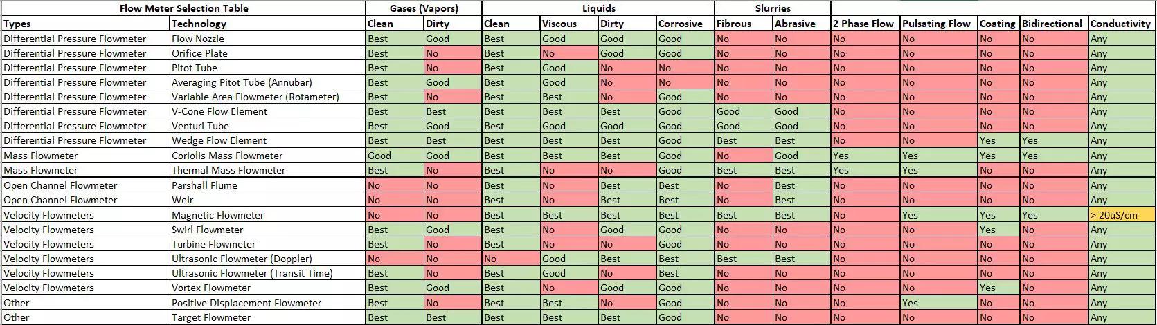 Other process guidelines for selecting instruments include variable area flowmeter (rotameter). Rotameters are not recommended for applications where the process fluid or density is subject to change.